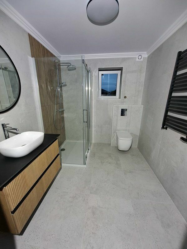 Kuchnia i łazienka w pełni wyposażone, gotowe do użytku.